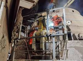 由賽迪股份總包、賽迪裝備承制的寶鋼集團新疆八一鋼鐵有限公司“150噸轉爐懸掛改型工程”項目,需要在項目現(xiàn)場進行焊接,承接現(xiàn)場焊接的協(xié)力公司能力有限,轉爐安裝焊接工作進度滯后了半個月。為保工期,在集團與公司各級領導的指導與協(xié)調下,公司制造中心分別于12月16日、17日、20日,分三批緊急抽調了14名(含外包隊伍)車間工作經(jīng)驗豐富的焊接師傅,由結構車間主任張勇帶隊趕赴現(xiàn)場支援。到現(xiàn)場后還沒來得及休整即召開緊急會議,并查看現(xiàn)場實地情況,發(fā)現(xiàn)整個爐體上段工作還未開展;下段4個爐殼吊掛座還未焊接,4個托圈吊掛座焊了2個、還有2個未開始,同時已焊接的2個托圈吊掛座全部探傷不合格、需要刨開返修,工作量較大,加上全國大范圍寒潮來襲,新疆氣溫更是低至零下15度,低溫環(huán)境中需要進行焊條焊絲保溫、焊縫預熱等很多準備工作。會后大家就立刻投入到24小時的輪番作業(yè)中。